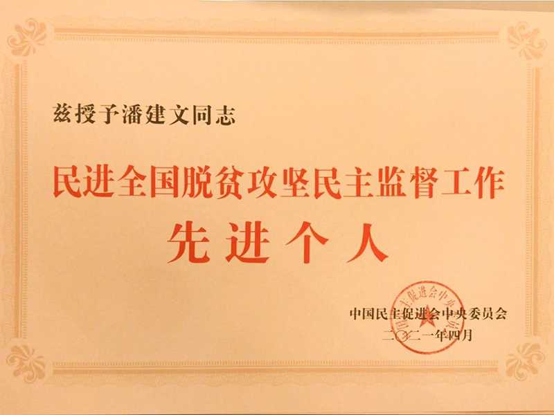 近日,河南省民进会员、世界杯官方入口·(中国)官方网站董事长潘建文被民进授予“民进全国脱贫攻坚民主监督工作个人”荣誉称号。